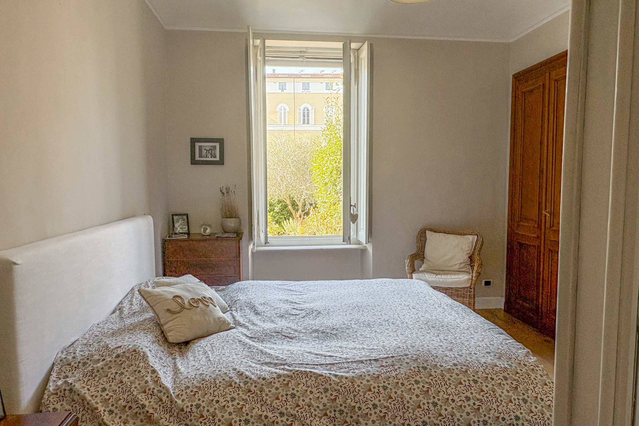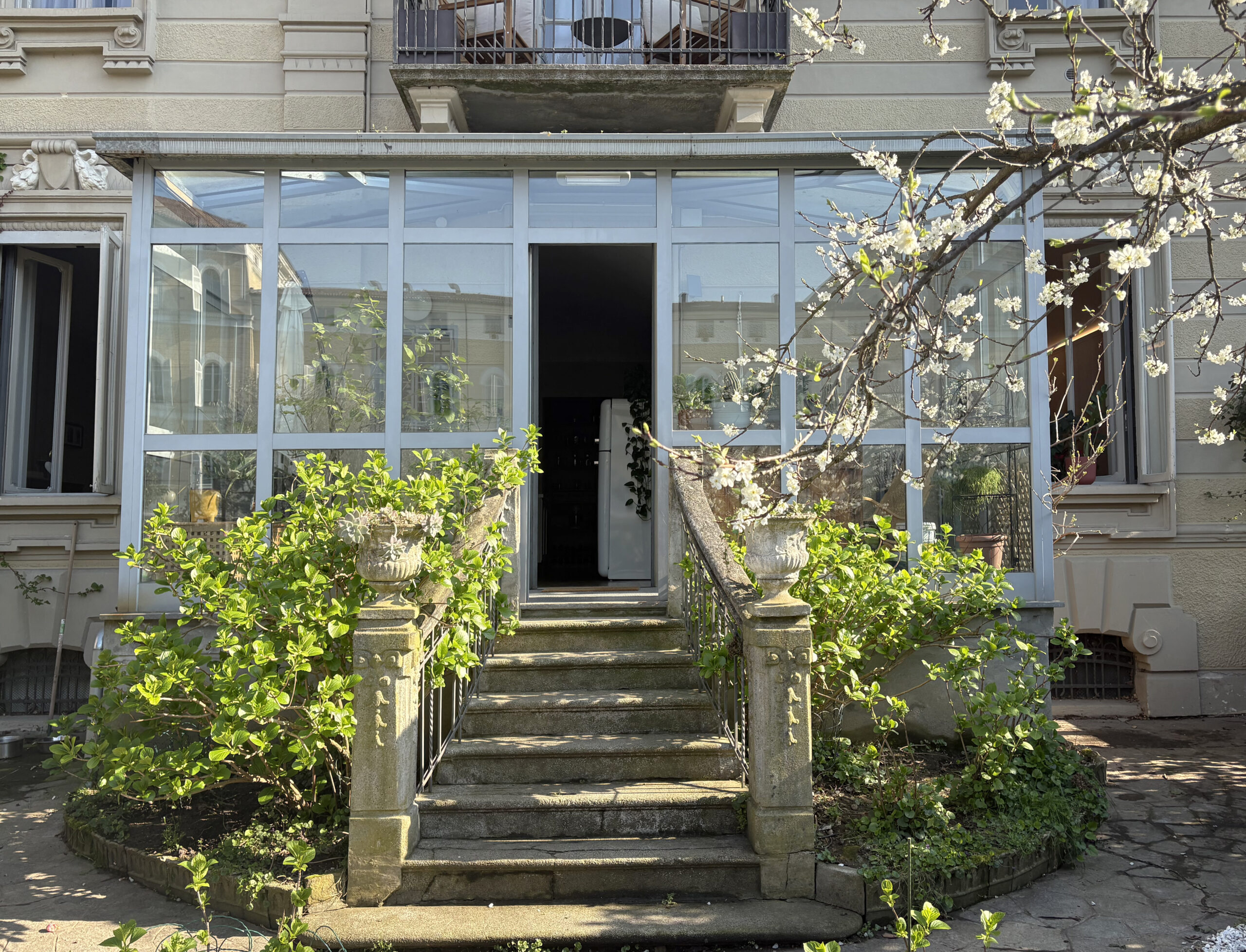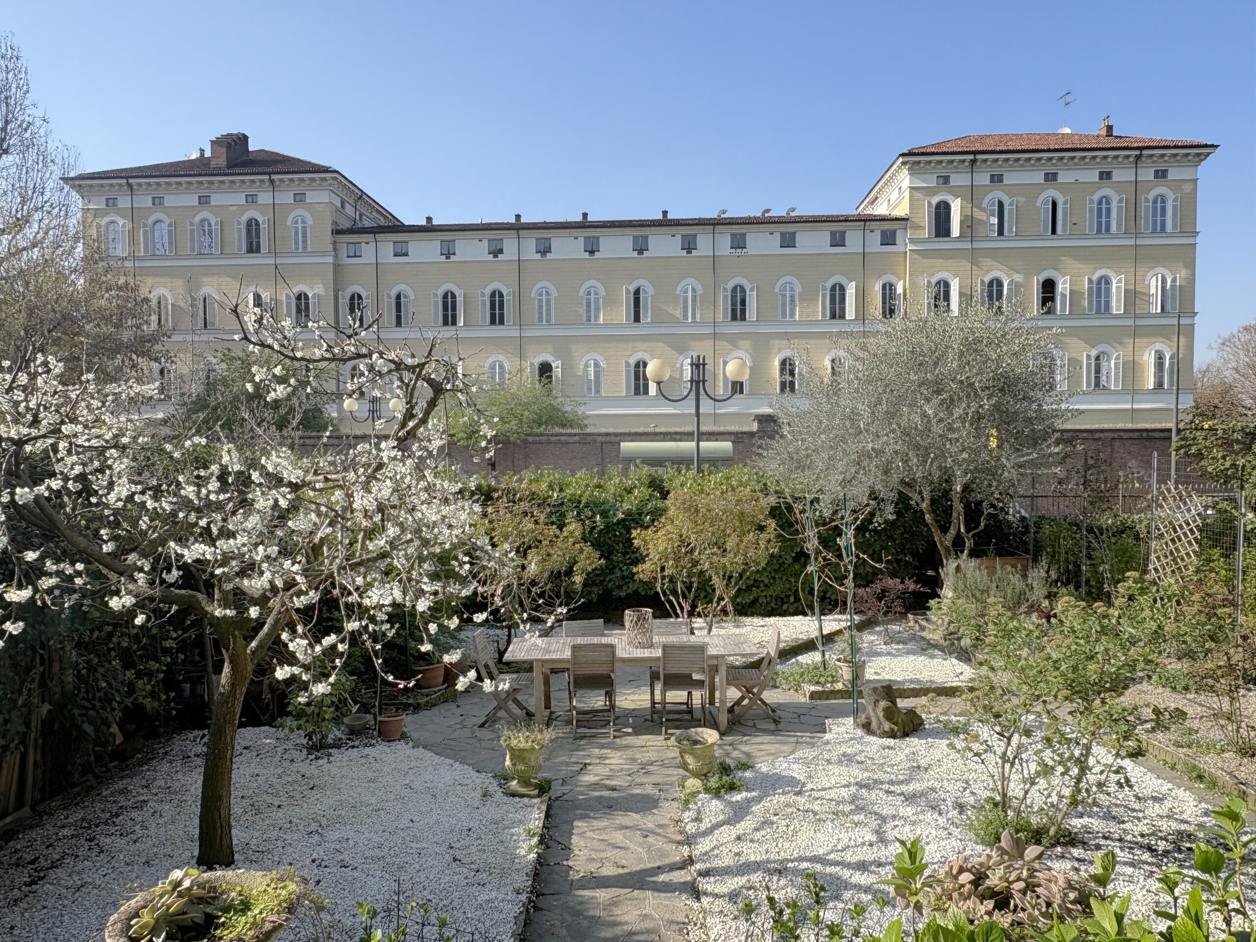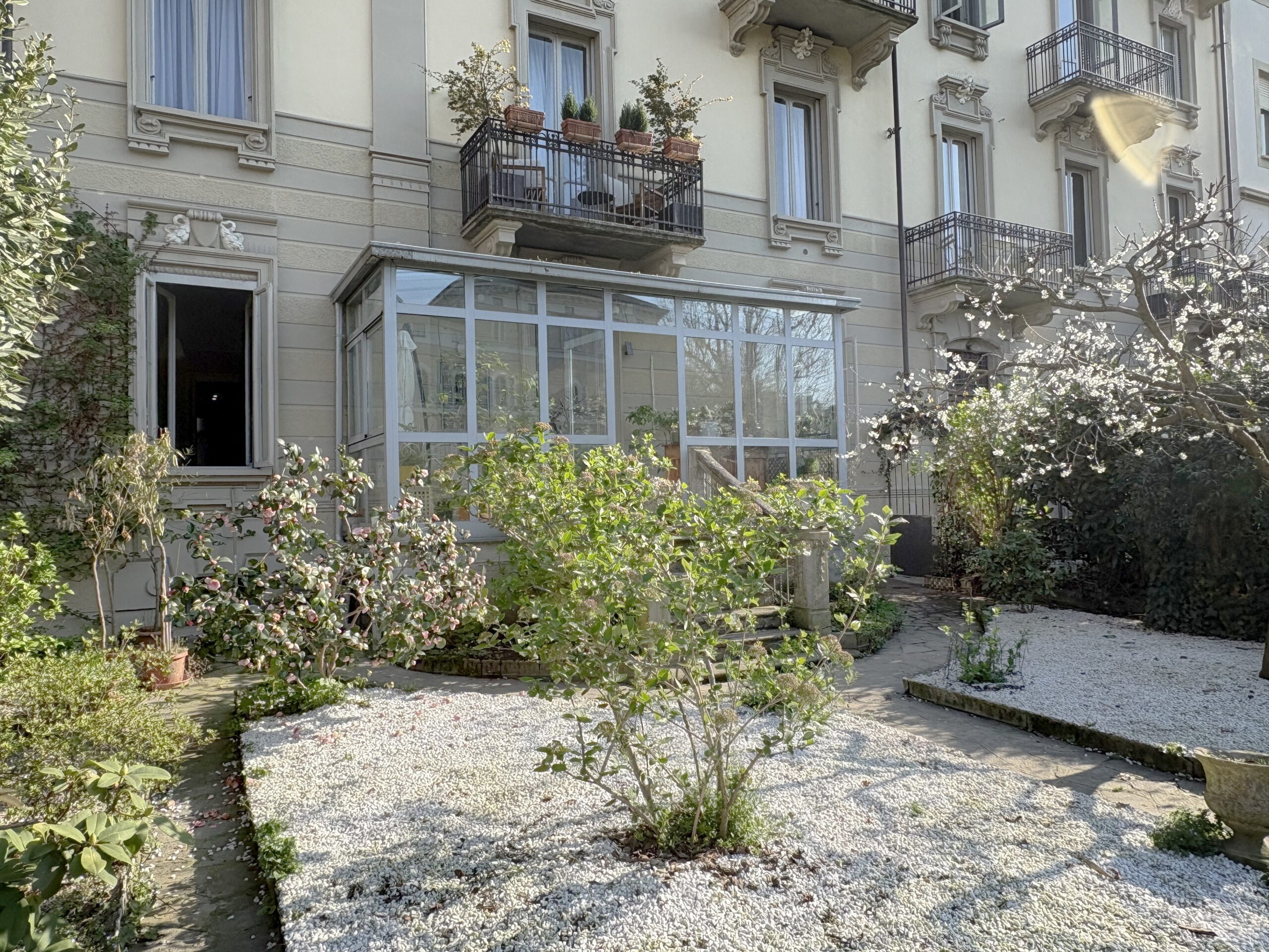 In contesto d’epoca, appartamento ristrutturato con ampio giardino privato. La proprietà, situata in posizione strategica e immersa nella quiete, si compone di salone con camino, studio, cucina abitabile con dispensa e una scenografica veranda con accesso diretto all'area verde. La zona notte comprende una camera padronale con bagno en-suite e cabina armadio, una seconda camera e un bagno. Una soluzione che coniuga finiture di pregio, tranquillità e il privilegio di uno spazio esterno esclusivo.