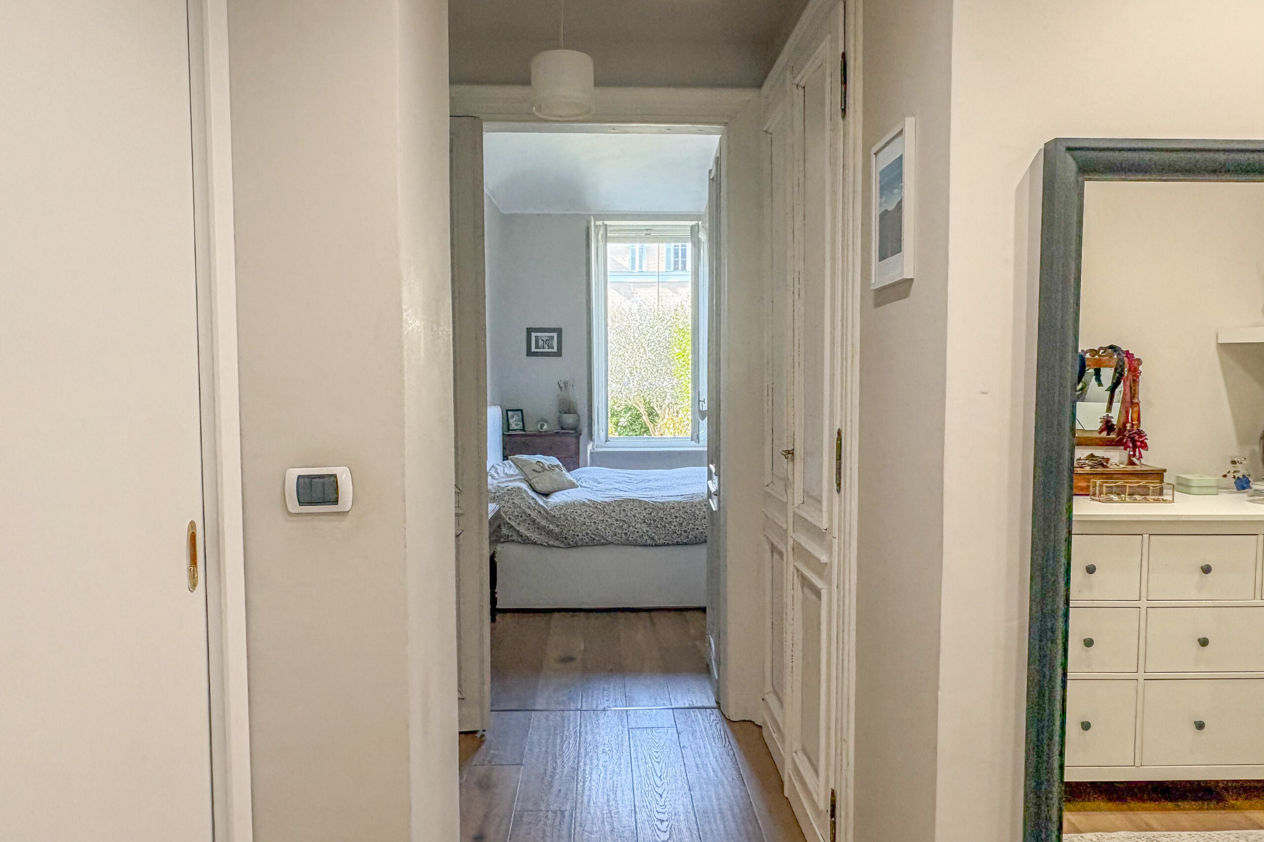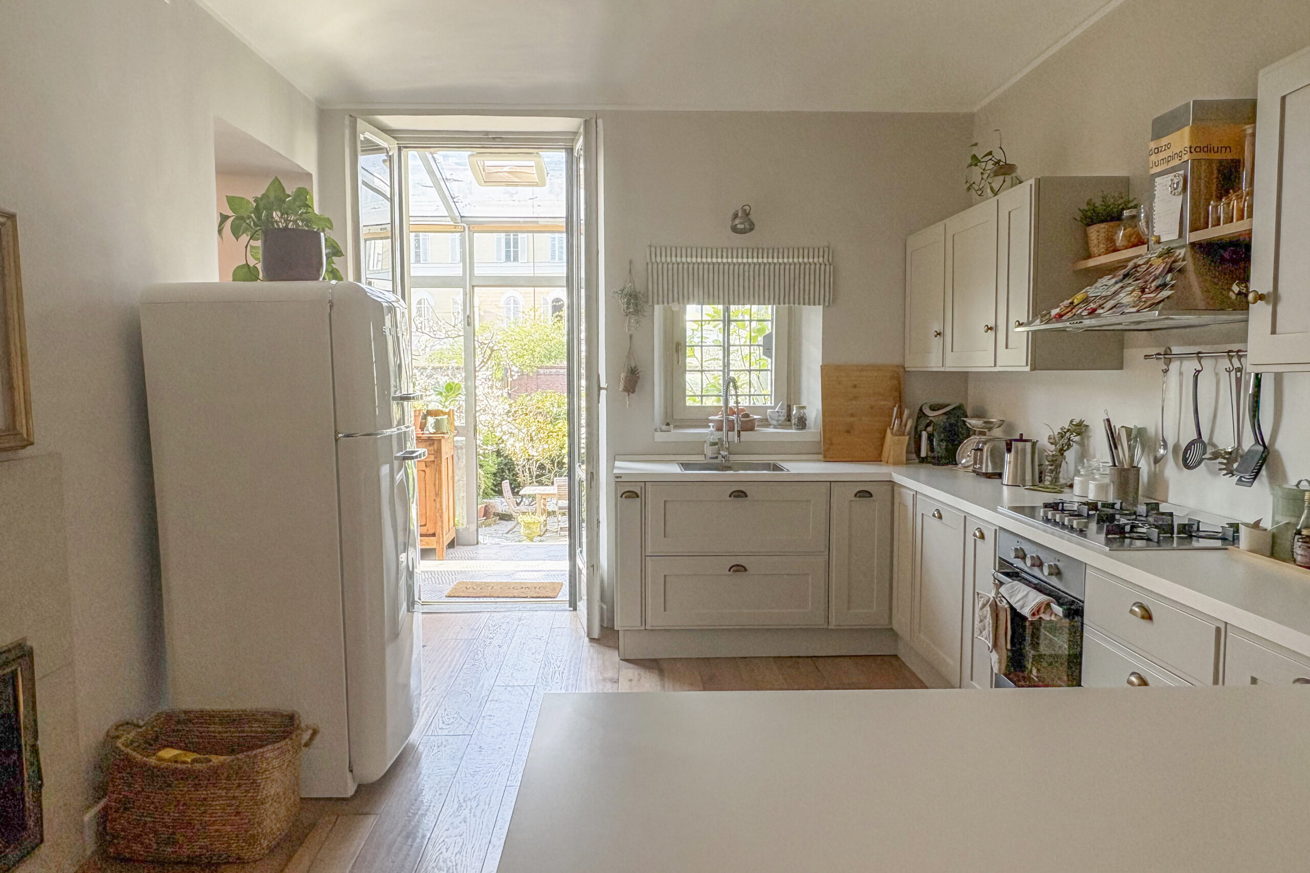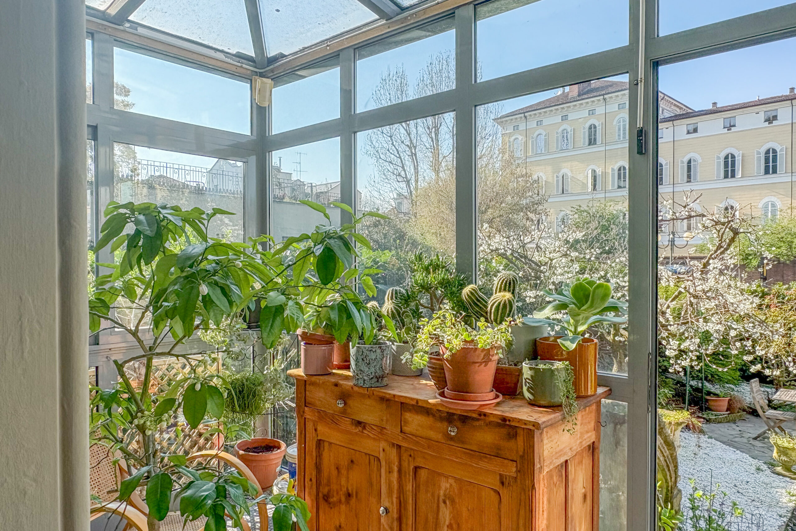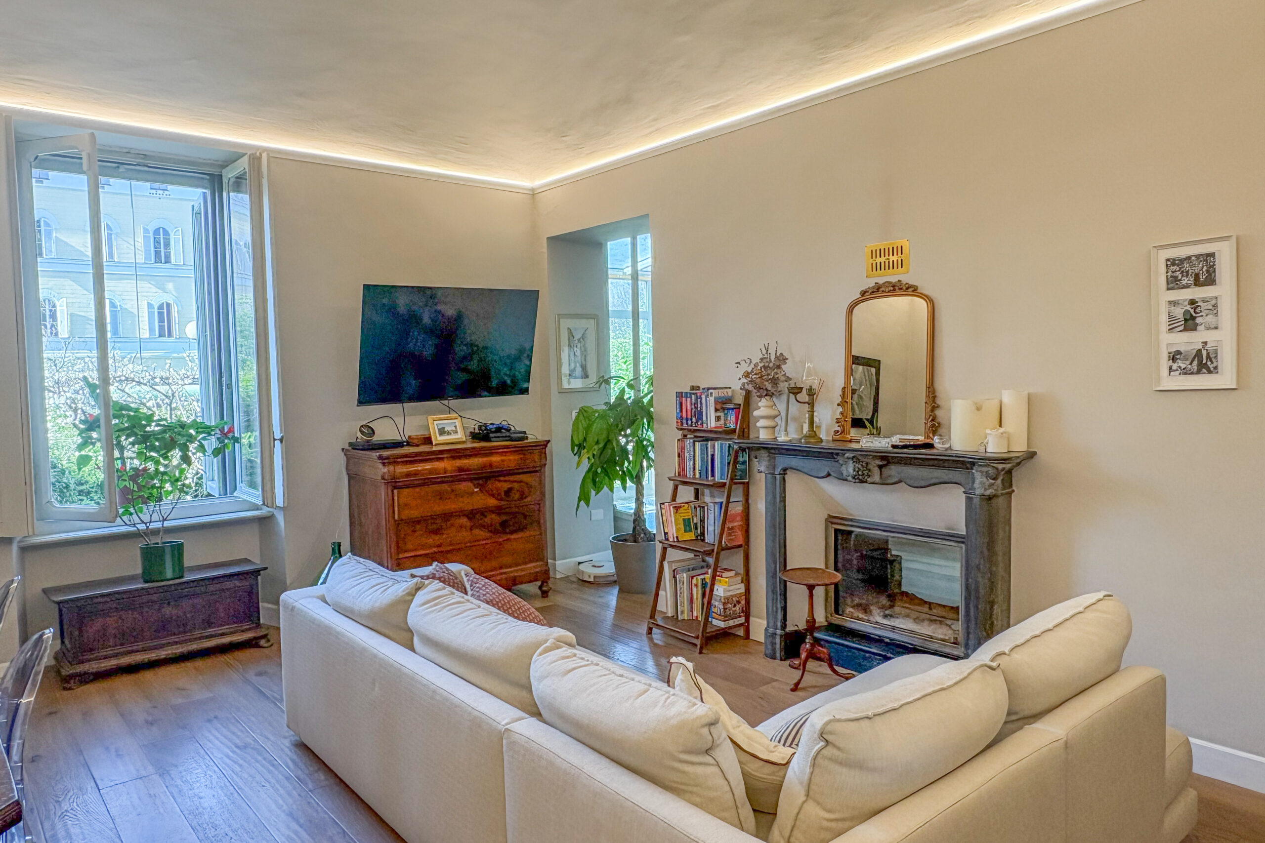 In contesto d’epoca, appartamento ristrutturato con ampio giardino privato. La proprietà, situata in posizione strategica e immersa nella quiete, si compone di salone con camino, studio, cucina abitabile con dispensa e una scenografica veranda con accesso diretto all'area verde. La zona notte comprende una camera padronale con bagno en-suite e cabina armadio, una seconda camera e un bagno. Una soluzione che coniuga finiture di pregio, tranquillità e il privilegio di uno spazio esterno esclusivo.